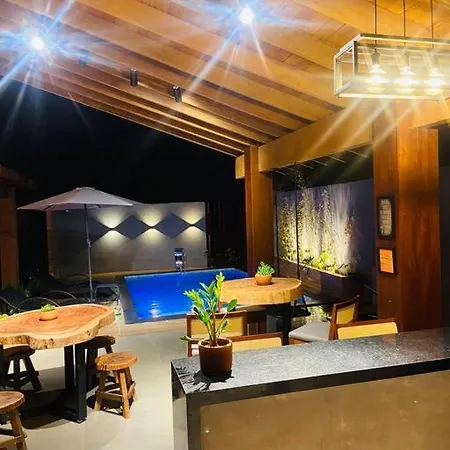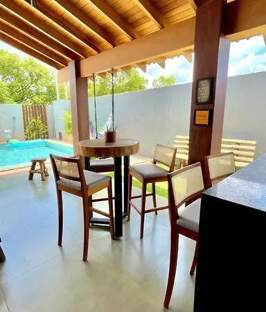 In der Villa in Bonito stehen Gästen ein Patio und ein Balkon sowie Unterhaltungsmöglichkeiten wie WLAN und ein Flachbildfernseher mit Satellitenkanälen zur Verfügung. Das Badezimmer ist mit einer getrennten Toilette und einer Dusche ausgestattet und verfügt auch über einen Haartrockner und Handtücher.